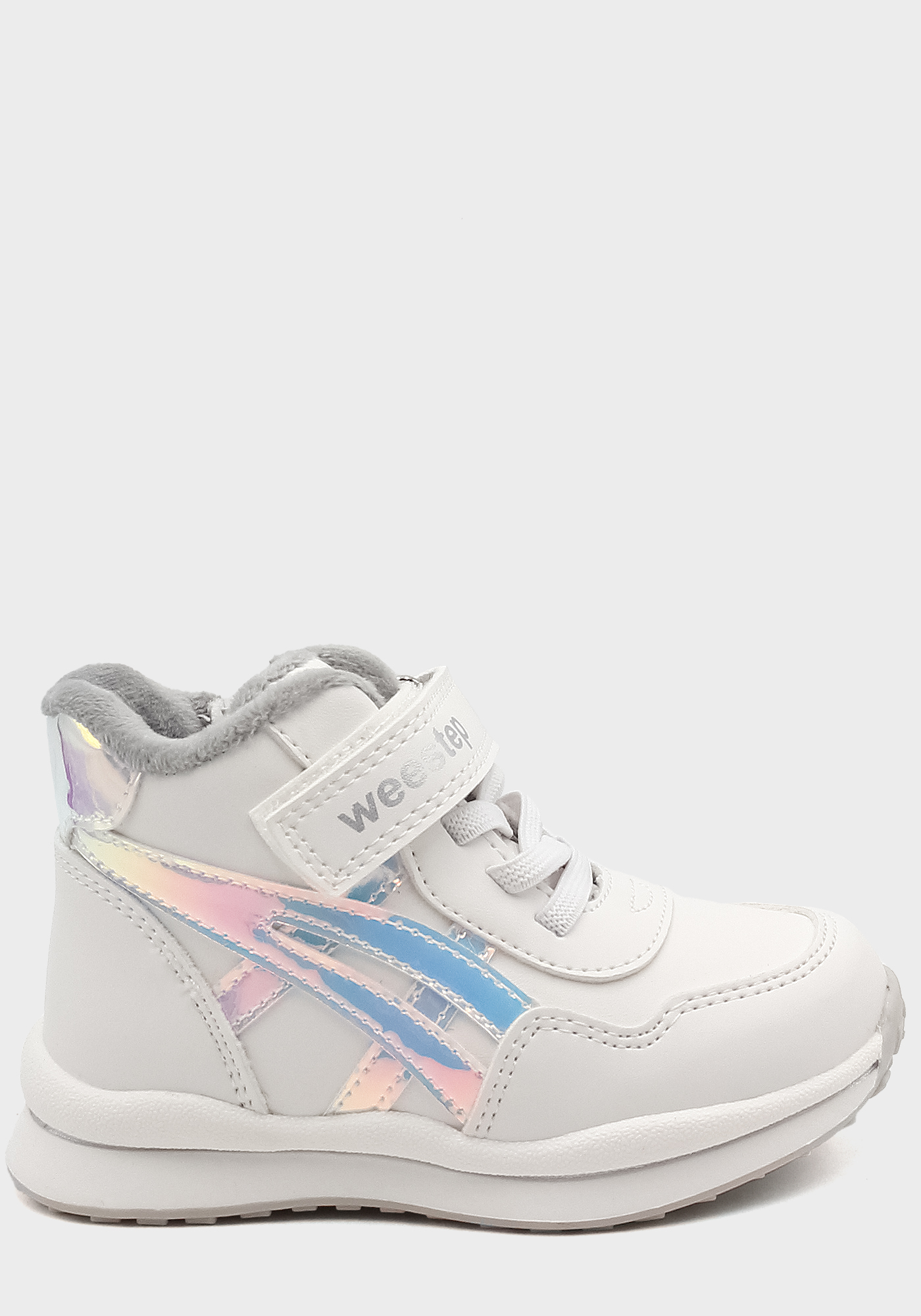 Бренд: Weestep; Сезон: Демісезон; Стиль: Спорт; Матеріал верху: Комбінований; Подошва: PVC(поливинилхлорид); Матеріал підкладки: Байка; Колір: Білий; Розмір: 22р; Вид товару: Черевики