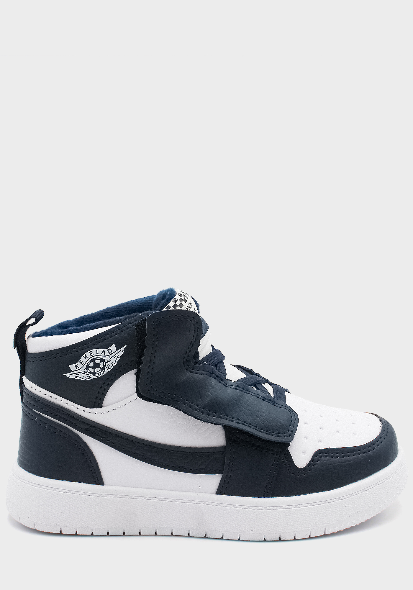 Бренд: Jong-golf; Сезон: Демісезон; Стиль: Спорт; Матеріал верху: Штучна шкіра; Подошва: TPR(термопласт.резина); Матеріал підкладки: Велюр; Колір: Білий/синій; Розмір: 27р; Вид товару: Черевики