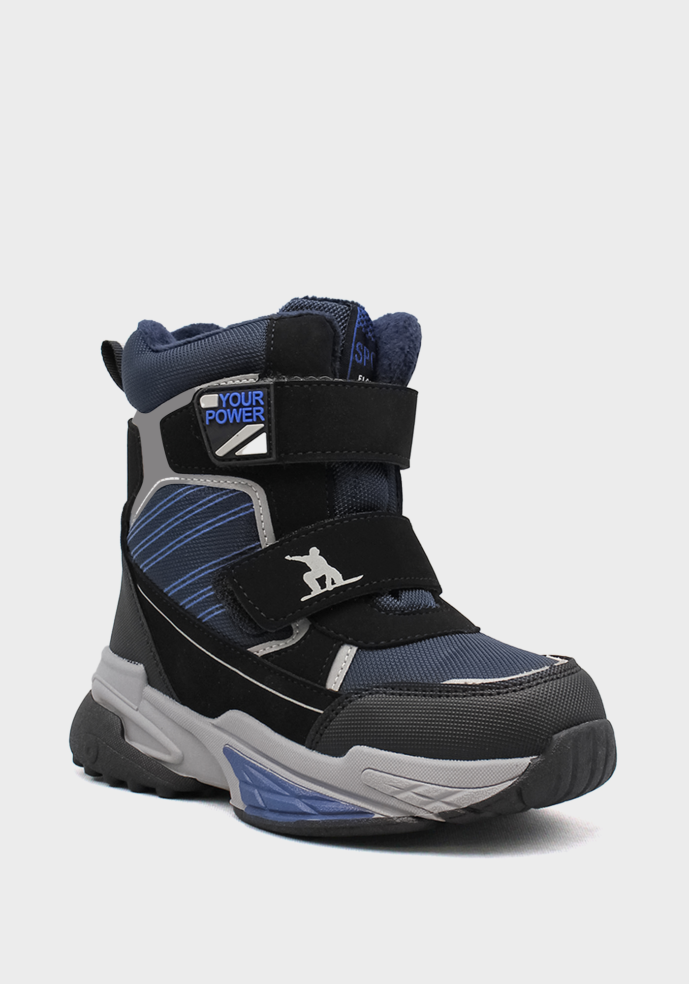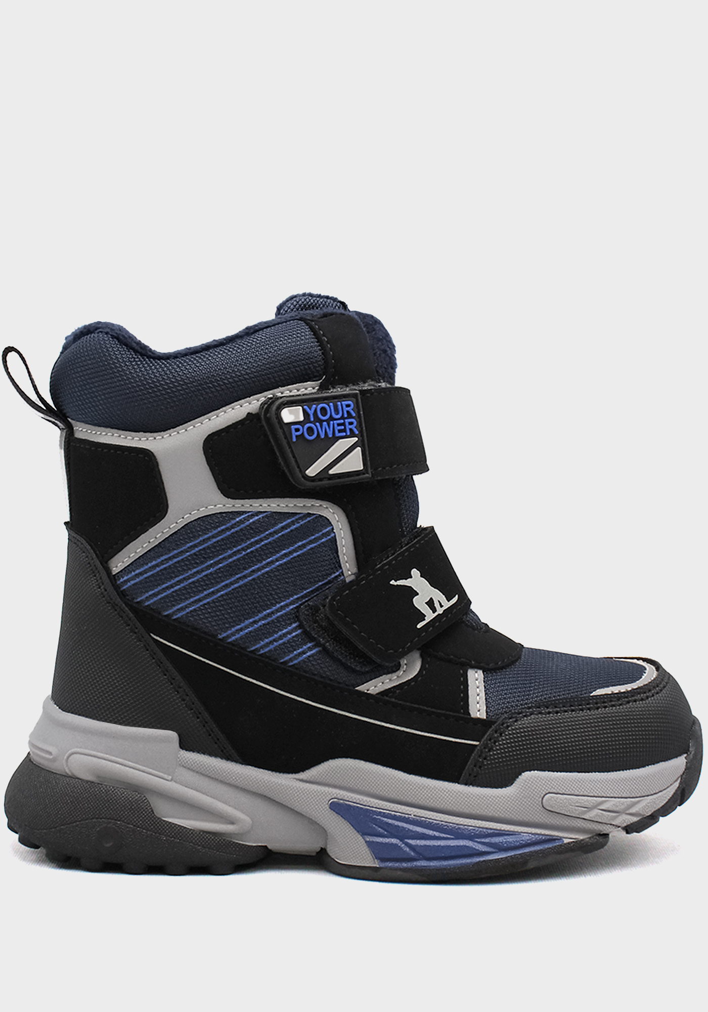 Бренд: HT; Сезон: Зима; Стиль: Спорт; Материал верха: Искусств.кожа/текстиль; Подошва: RB(резина); Материал подкладки: Шерсть; Цвет: Чёрный/синий; Размер: 30р; Вид товара: Ботинки