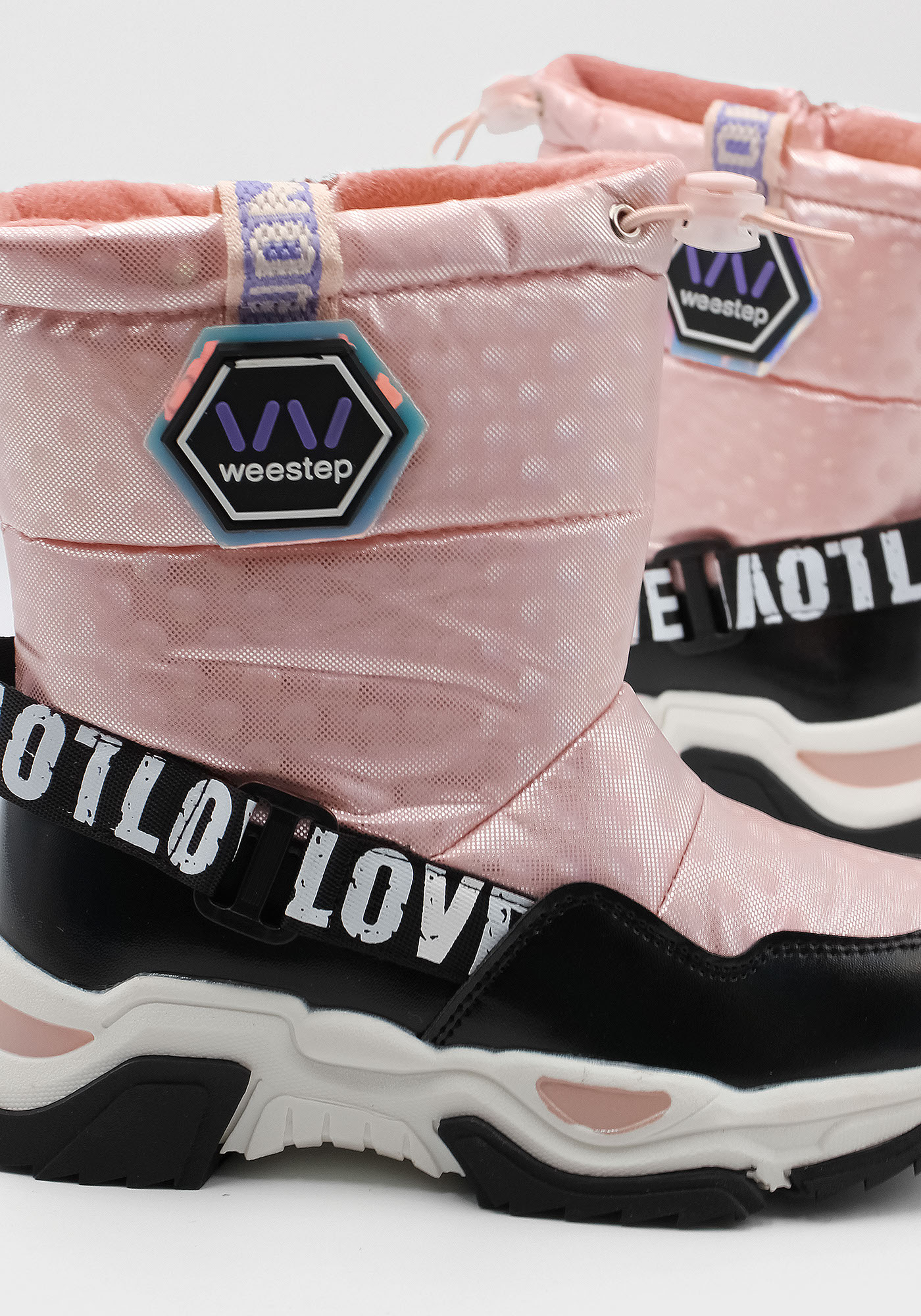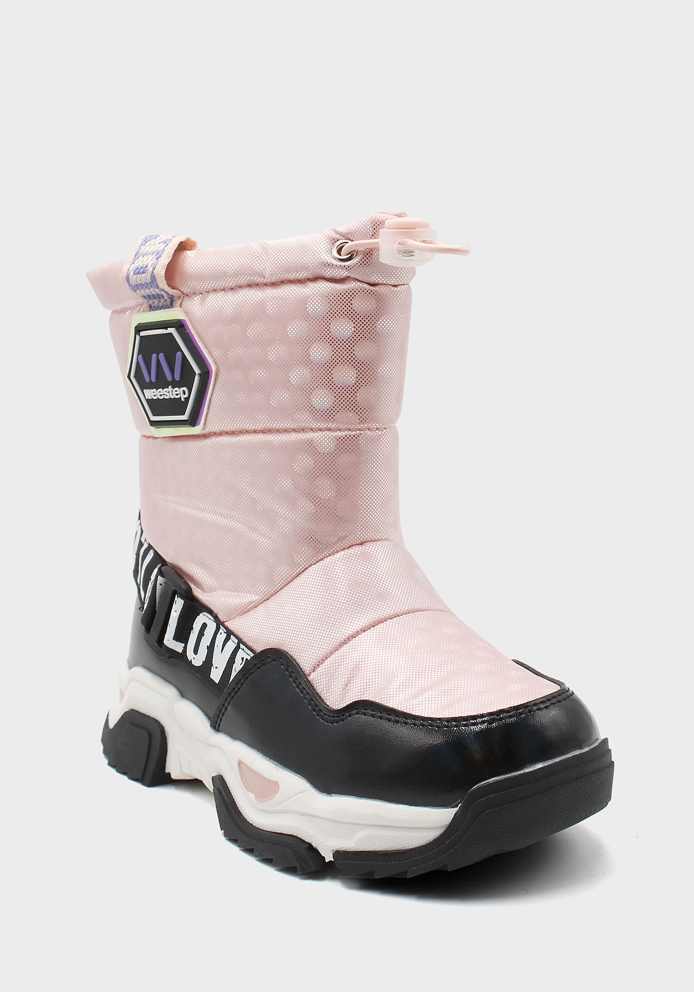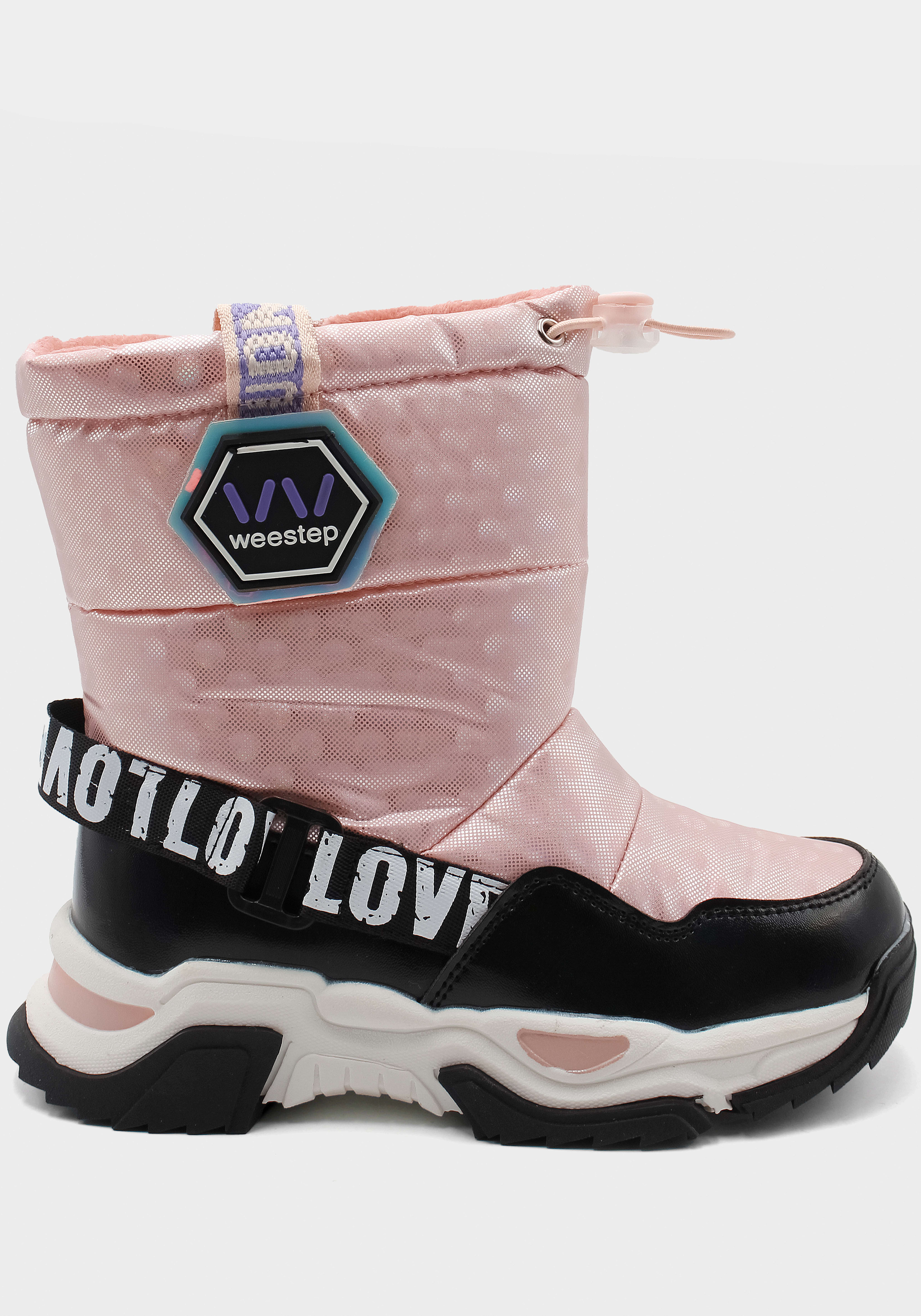 Бренд: Weestep; Сезон: Зима; Стиль: Casual; Матеріал верху: Комбінований; Подошва: PVC(поливинилхлорид); Матеріал підкладки: Вовна; Колір: Рожевий; Розмір: 27р; Вид товару: Черевики