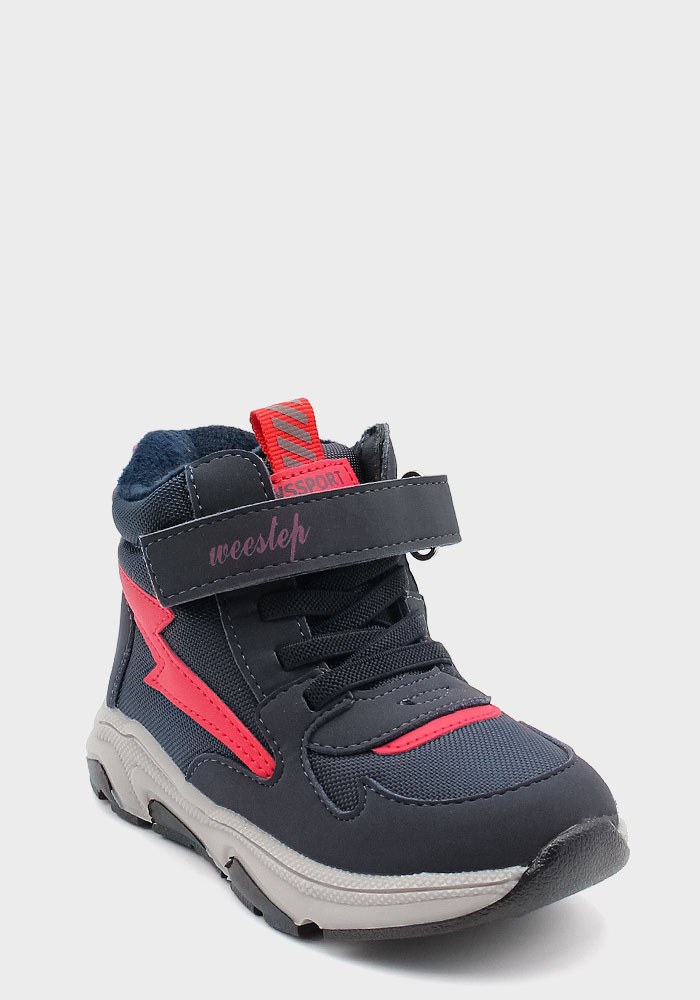 Бренд: Weestep; Сезон: Демісезон; Стиль: Casual; Матеріал верху: Еко-шкіра/текстиль; Подошва: PVC(поливинилхлорид); Матеріал підкладки: Велюр; Колір: Синій/червоний; Розмір: 23р; Вид товару: Черевики