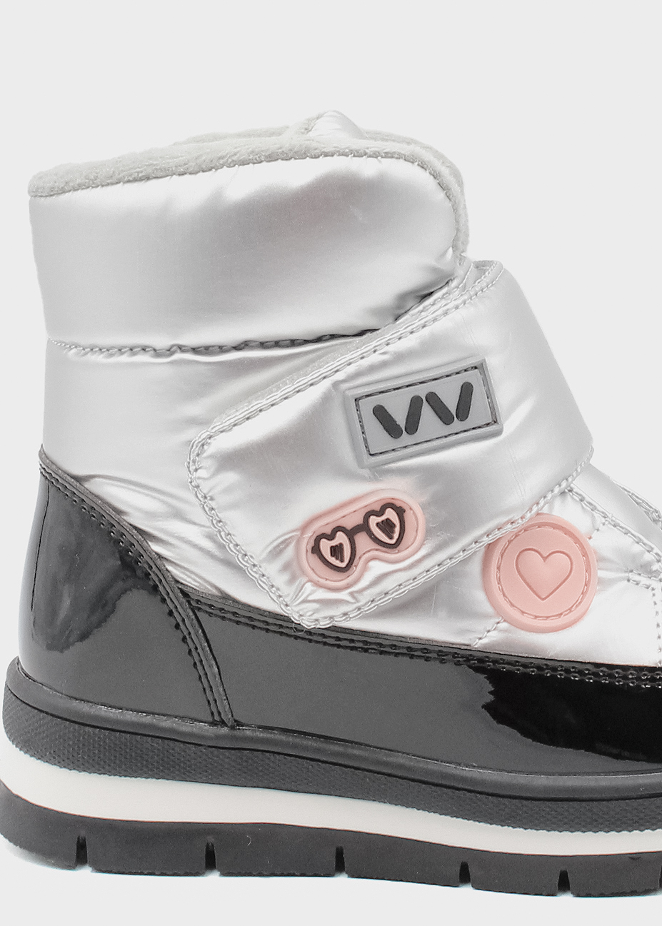 Бренд: Weestep; Сезон: Зима; Стиль: Casual; Матеріал верху: Комбінований; Подошва: PVC(поливинилхлорид); Матеріал підкладки: Вовна; Колір: Чорний/срібний; Розмір: 29р; Вид товару: Дутики