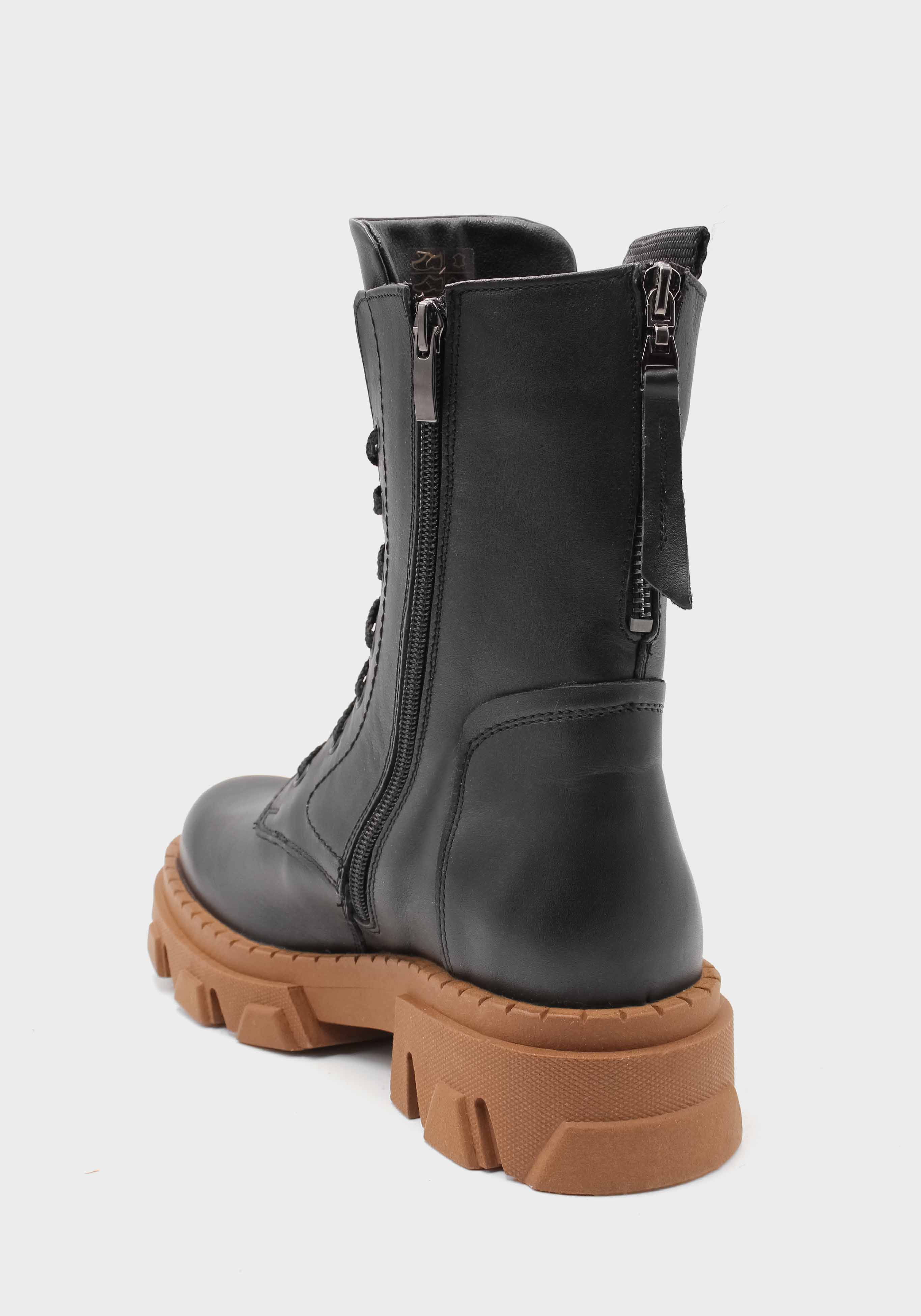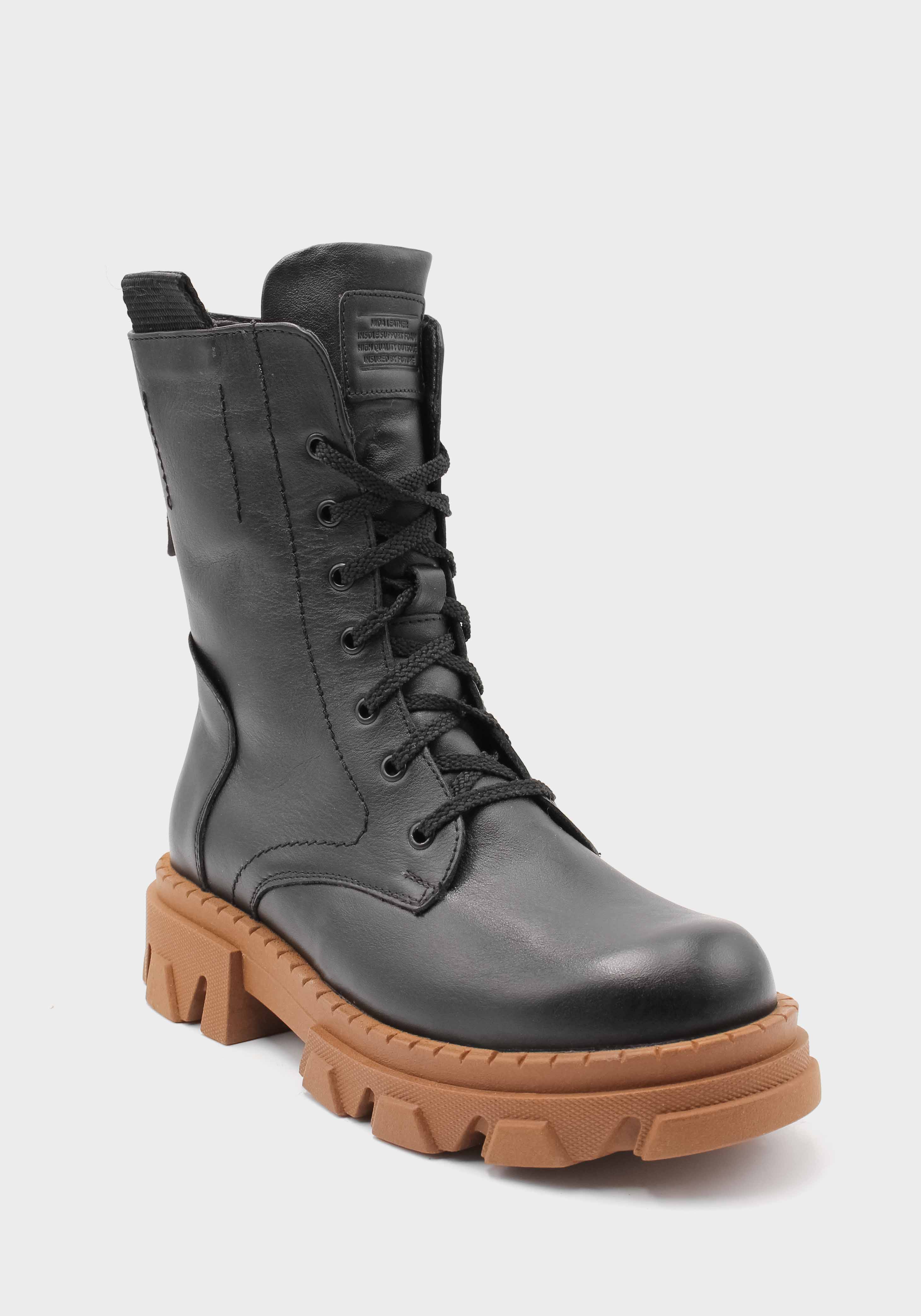 Женские зимние сапоги украинского бренда MIDA выполнены из качественной натуральной кожи. Модель утеплена натуральной шерстью, защишающей тело от морозов. Рифленая подошва из термоэластопласта убережет от промоканий в снегопады и оттепель. Термоэластопласт обеспечивает идеальное сцепление с поверхностью и хорошо предотвращает падения на льду. Стильные черные сапоги в стиле Casual в сочетании с модной черной шнуровкой и широкой коричневой подошвой отлично сочетаются с любой одеждой.
