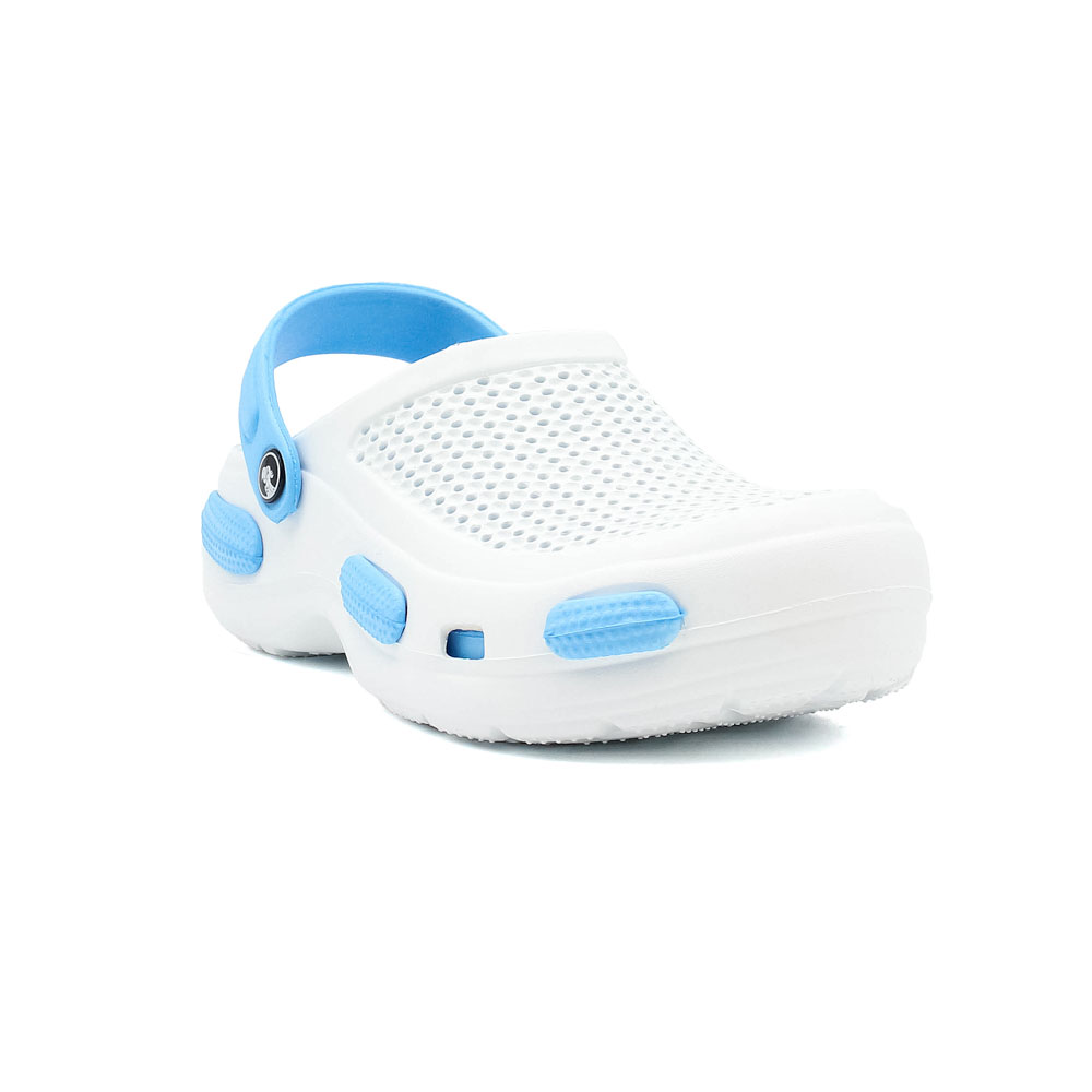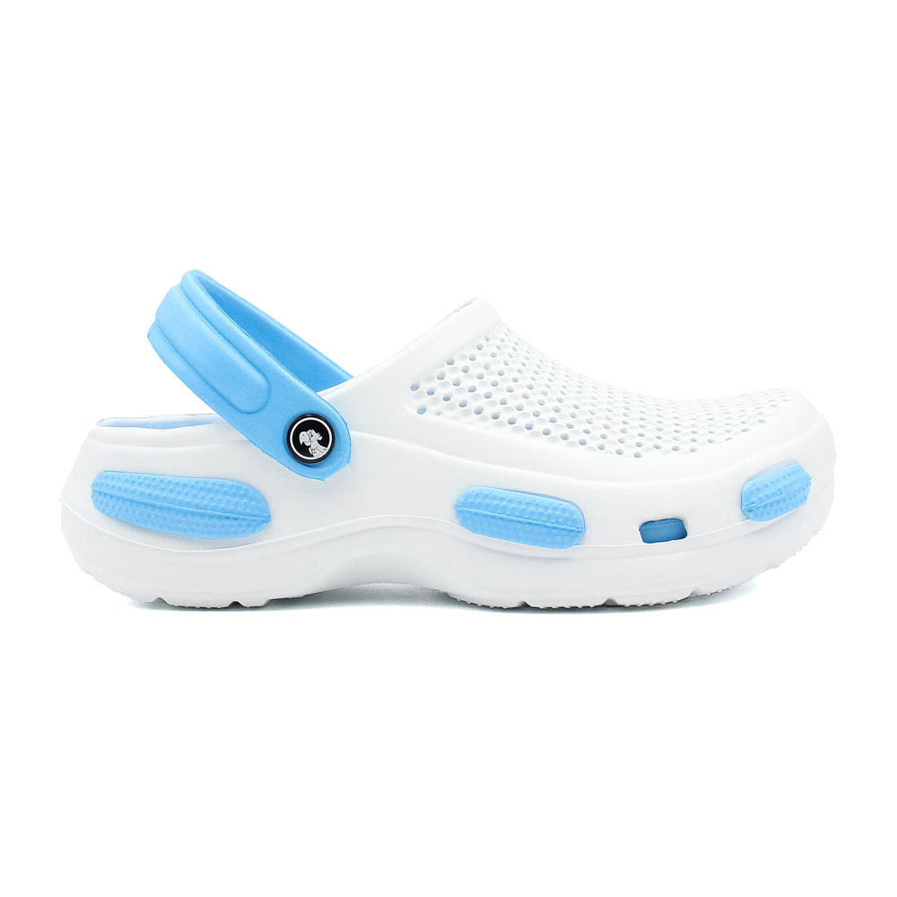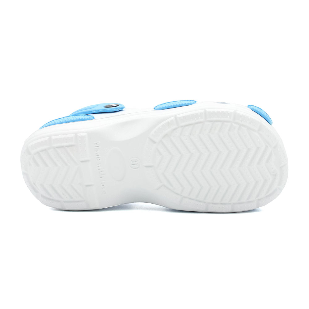 Бренд: JOSE AMORALES; Сезон: Лето; Стиль: Комфорт; Материал верха: ЭВА; Подошва: EVA(етиленвинилацетат); Материал подкладки: ЭВА; Цвет: Белый/голубой; Размер: 37р; Вид товара: Кроксы