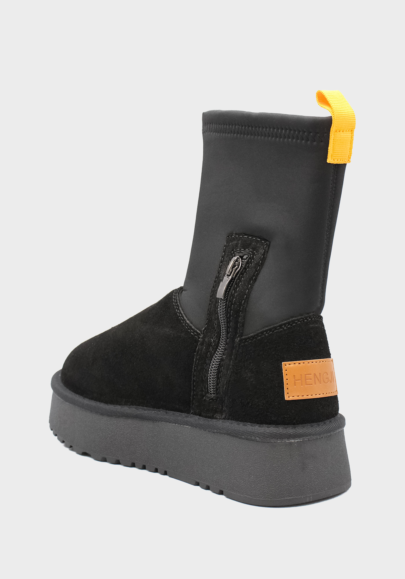 Бренд: HENGJI; Сезон: Зима; Стиль: Casual; Матеріал верху: Замша/текстиль; Подошва: PVC(поливинилхлорид); Матеріал підкладки: Вовна; Колір: Чорний; Розмір: 38р
