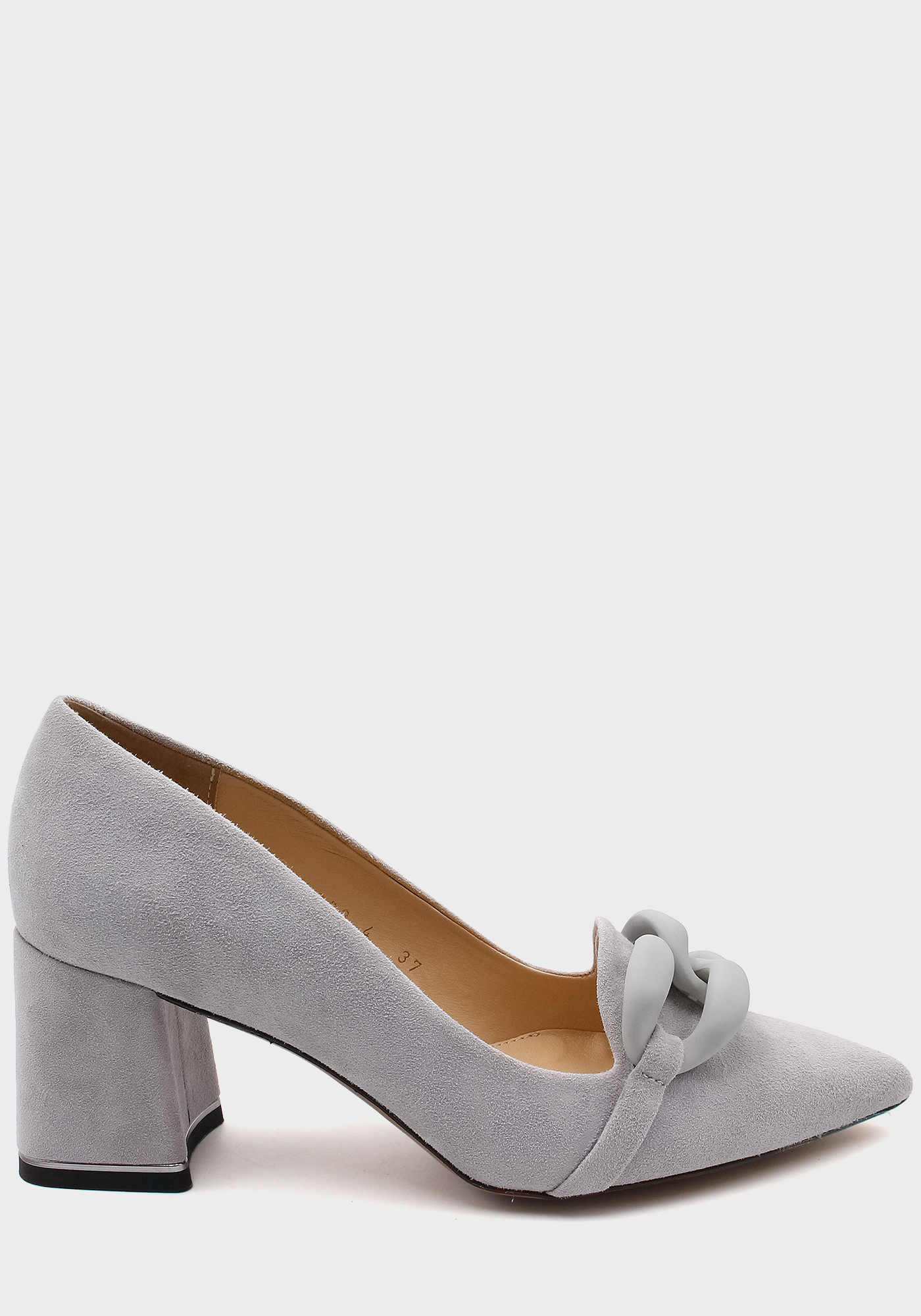 Стильные и эффектные женские велюровые туфли на каблуке с цепью. Модель выполнена в шикарном сером цвете, который создает роскошный облик. Каблук – имеет отличную устойчивую форму и высоту, что делает эти туфли невероянто удобными. Объемная цепь в виде декора завершают модный фасон пары.Такие женские классические туфли позволят добавить элегантности и презентабельности образу, сделают силуэт выше и стройнее, а походку – грациознее.